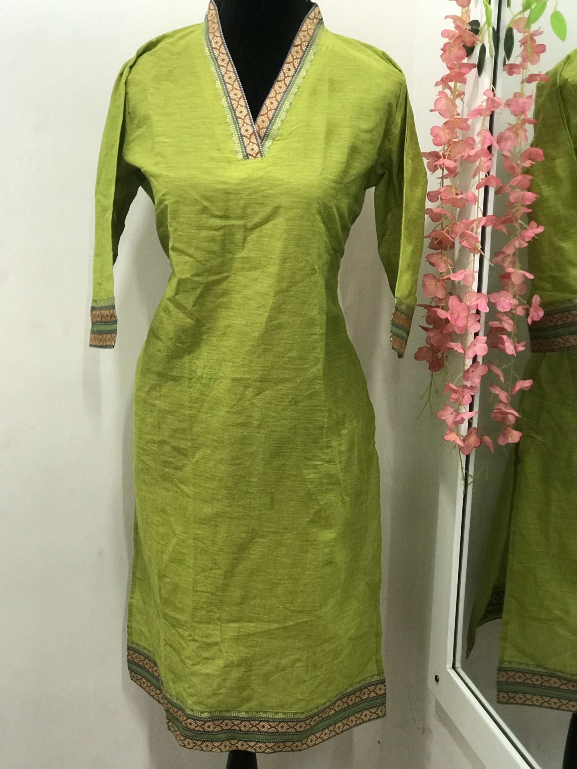 Buy Apple Green Cotton Casual Kurti with Elegant Border Online in Sri Lanka