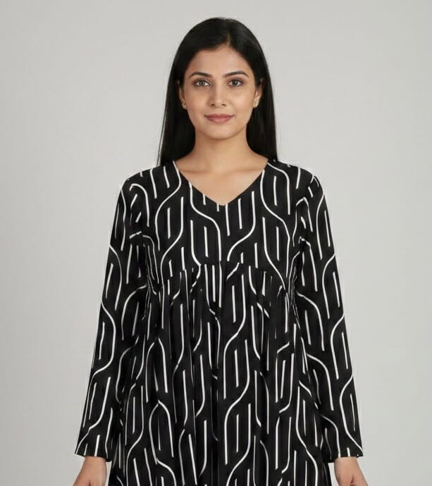 Black And White Full Sleeve Classic Short Kurti from our short-kurtis collection in Sri Lanka. 26″ – 32″ inches provides a stylish look while keeping comfort in mind. Black And White Full Sleeve Classic Short Kurti Ideal for parties, casual outings, and special occasions. Black And White Full Sleeve Classic Short Kurti Perfect for women seeking both style and comfort in Sri Lanka. Black And White Full Sleeve Classic Short Kurti Ideal for parties, casual outings, and special occasions.