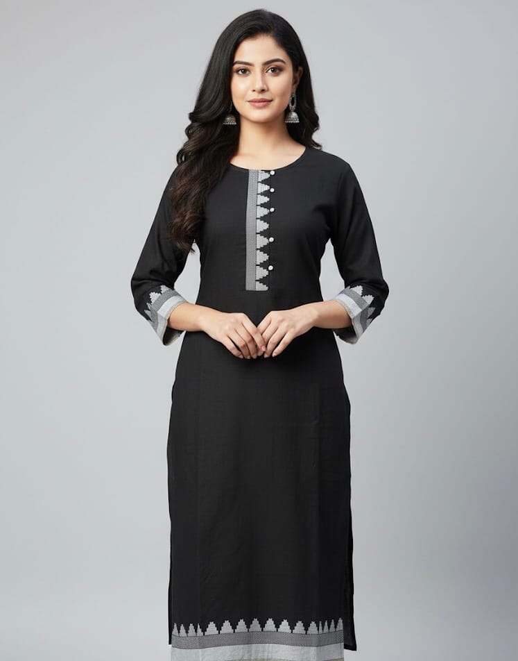 Black Cotton Plain Casual Wear from our casual-wear-kurtis collection in Sri Lanka. 40″ – 41″ inches length offers elegant design and superior comfort for every occasion. Black Cotton Plain Casual Wear Ideal for parties, casual outings, and special occasions. Black Cotton Plain Casual Wear Ideal for parties, casual outings, and special occasions. Black Cotton Plain Casual Wear Ideal for parties, casual outings, and special occasions.