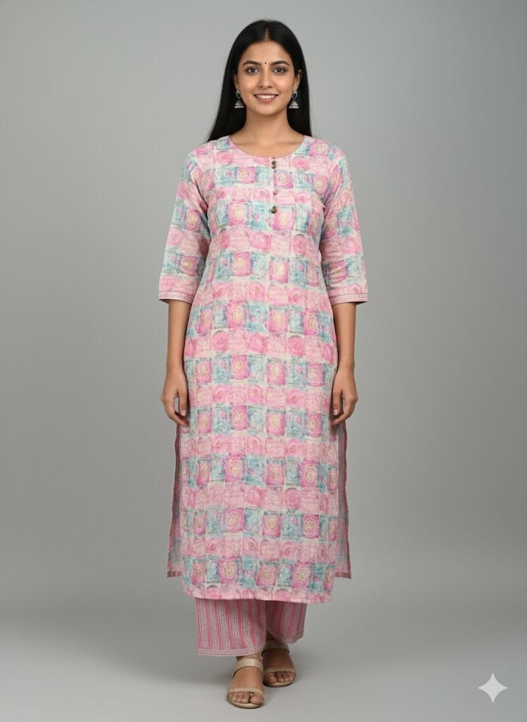 Charm Baby Pink And Blue Co -Ord Set from our casual-wear-kurtis collection in Sri Lanka. 40″ – 41″ inches length provides a stylish look while keeping comfort in mind. Charm Baby Pink And Blue Co -Ord Set Ideal for parties, casual outings, and special occasions. Charm Baby Pink And Blue Co -Ord Set Perfect for women seeking both style and comfort in Sri Lanka. Charm Baby Pink And Blue Co -Ord Set This collection ensures versatility and premium quality.