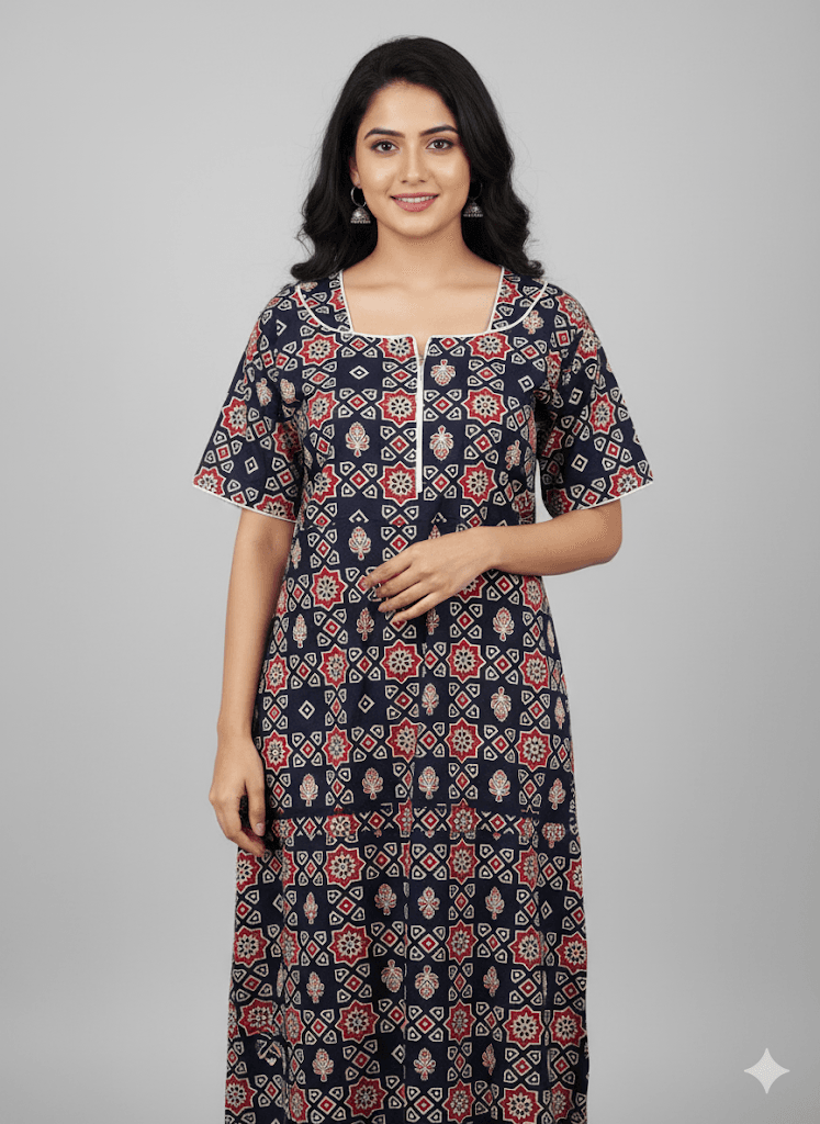 Cotton Feeding Friendly Night Wear from our nightwear collection in Sri Lanka. Free Size, Full length offers elegant design and superior comfort for every occasion. Cotton Feeding Friendly Night Wear Perfect for women seeking both style and comfort in Sri Lanka. Cotton Feeding Friendly Night Wear Perfect for women seeking both style and comfort in Sri Lanka. Cotton Feeding Friendly Night Wear This collection ensures versatility and premium quality.