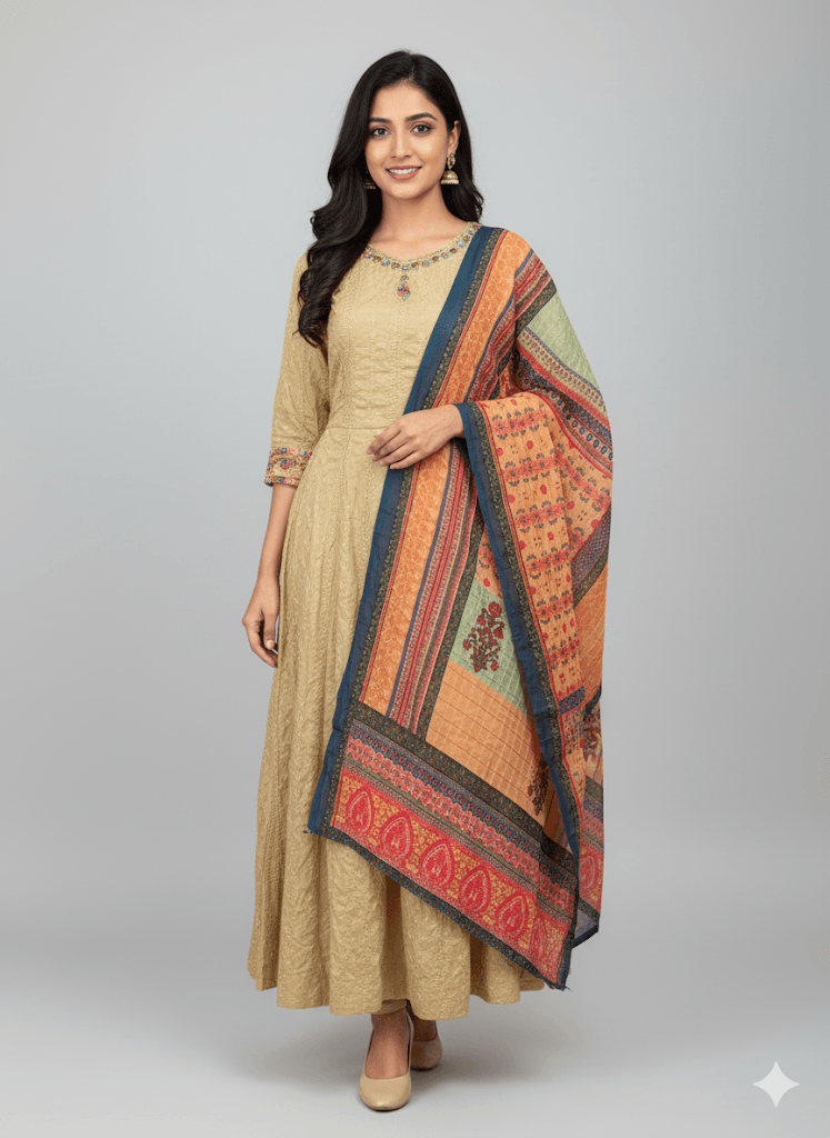 Cream Anarkali Paired with Colorful Shawl. from our party-wear-kurtis collection in Sri Lanka. 50″ inches length provides a stylish look while keeping comfort in mind. Cream Anarkali Paired with Colorful Shawl. Ideal for parties, casual outings, and special occasions. Cream Anarkali Paired with Colorful Shawl. This collection ensures versatility and premium quality. Cream Anarkali Paired with Colorful Shawl. This collection ensures versatility and premium quality.