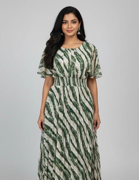 Elegant Green Georgette Western Dress