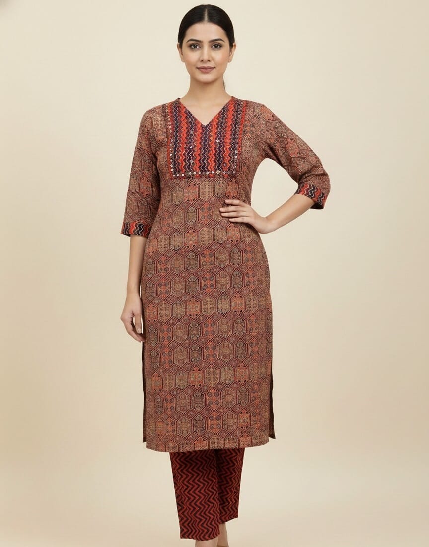 Ethnic Ajrakh Printed Mirror Work Kurti With Pant from our co-ord-sets collection in Sri Lanka. combines modern style with lasting quality, perfect for daily wear. Ethnic Ajrakh Printed Mirror Work Kurti With Pant Available in multiple sizes and patterns to suit every taste. Ethnic Ajrakh Printed Mirror Work Kurti With Pant Perfect for women seeking both style and comfort in Sri Lanka. Ethnic Ajrakh Printed Mirror Work Kurti With Pant Ideal for parties, casual outings, and special occasions.