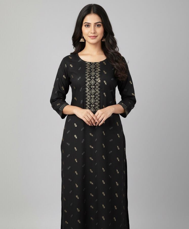 Gold Printed Black Casual Wear from our casual-wear-kurtis collection in Sri Lanka. 40″ – 41″ inches length combines modern style with lasting quality, perfect for daily wear. Gold Printed Black Casual Wear Available in multiple sizes and patterns to suit every taste. Gold Printed Black Casual Wear This collection ensures versatility and premium quality. Gold Printed Black Casual Wear Available in multiple sizes and patterns to suit every taste.