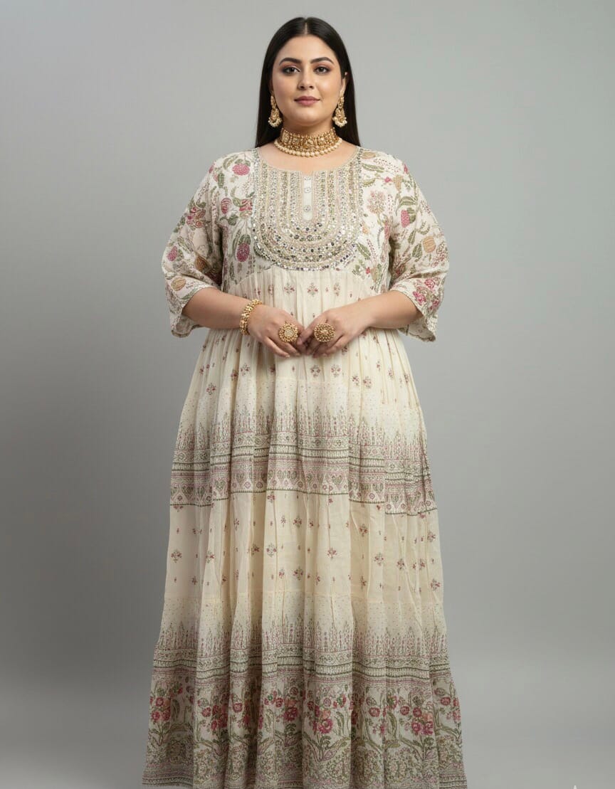 Mirror work charm cotton plus sized Anarkali from our plus-size-kurtis collection in Sri Lanka. 40″ – 41″ inches length is crafted with high-quality materials to ensure comfort and style. Mirror work charm cotton plus sized Anarkali Available in multiple sizes and patterns to suit every taste. Mirror work charm cotton plus sized Anarkali Ideal for parties, casual outings, and special occasions. Mirror work charm cotton plus sized Anarkali Available in multiple sizes and patterns to suit every taste.