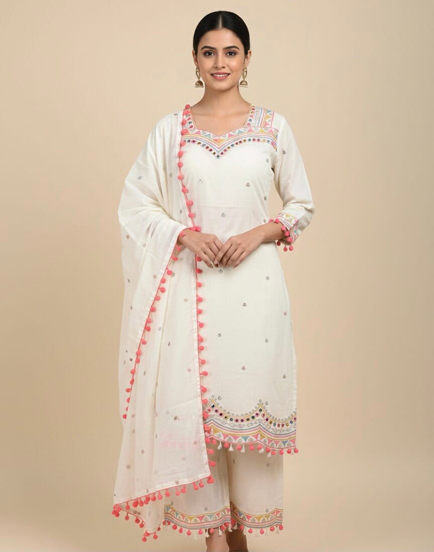 Mul Chanderi White Embroidered Kurti Set Order today and explore more options in our collection! Explore our Party Wear collection in Sri Lanka. Discover Cream Thread Embroidered Chanderi Suit in Sri Lanka. Discover Lavender Elegant Embroidered Set Kurti in Sri Lanka. Discover Off White Elegance Embroidered Set in Sri Lanka. Discover Black And White Stone Work Kurti Set in Sri Lanka.