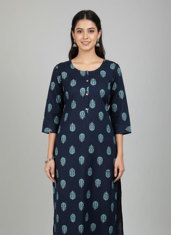 Navy Blue Floral Casual Kurti from our casual-wear-kurtis collection in Sri Lanka. 40″ – 41″ inches length offers elegant design and superior comfort for every occasion. Navy Blue Floral Casual Kurti This collection ensures versatility and premium quality. Navy Blue Floral Casual Kurti Perfect for women seeking both style and comfort in Sri Lanka. Navy Blue Floral Casual Kurti Ideal for parties, casual outings, and special occasions.