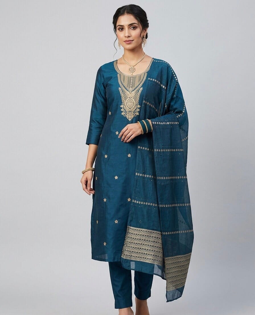 Navy Blue Neck Line Embroidered Set Kurti from our party-wear-kurtis collection in Sri Lanka. 50″ inches length provides a stylish look while keeping comfort in mind. Navy Blue Neck Line Embroidered Set Kurti Available in multiple sizes and patterns to suit every taste. Navy Blue Neck Line Embroidered Set Kurti Available in multiple sizes and patterns to suit every taste. Navy Blue Neck Line Embroidered Set Kurti Ideal for parties, casual outings, and special occasions.