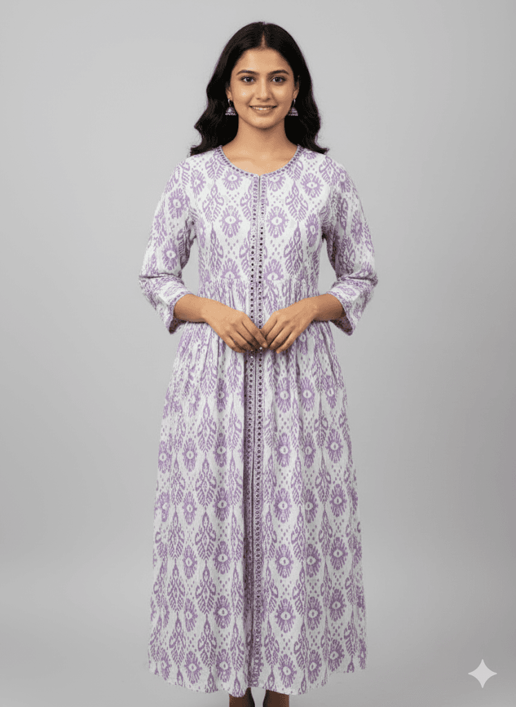 Purple And White Charming Anarkali Kurti from our casual-wear-kurtis collection in Sri Lanka. 40″ – 41″ inches length is crafted with high-quality materials to ensure comfort and style. Purple And White Charming Anarkali Kurti Perfect for women seeking both style and comfort in Sri Lanka. Purple And White Charming Anarkali Kurti Ideal for parties, casual outings, and special occasions. Purple And White Charming Anarkali Kurti Perfect for women seeking both style and comfort in Sri Lanka.