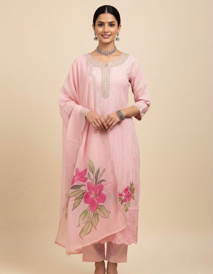 Rosy Pink Embroidered set