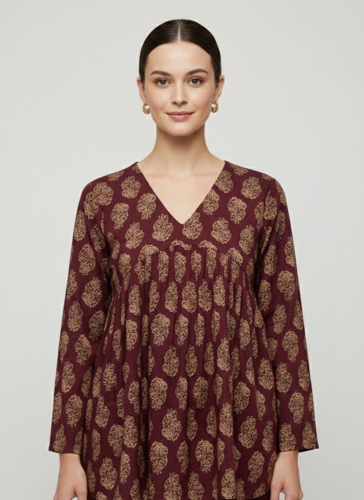 Traditional Print Maroon Short Kurti from our short-kurtis collection in Sri Lanka. 26″ – 32″ inches provides a stylish look while keeping comfort in mind. Traditional Print Maroon Short Kurti Available in multiple sizes and patterns to suit every taste. Traditional Print Maroon Short Kurti Available in multiple sizes and patterns to suit every taste. Traditional Print Maroon Short Kurti Ideal for parties, casual outings, and special occasions.