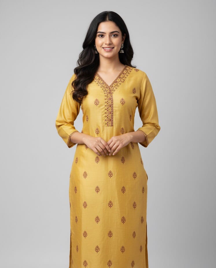 V Neck Embroidered Yellow Casual Kurti from our casual-wear-kurtis collection in Sri Lanka. 40″ – 41″ inches length combines modern style with lasting quality, perfect for daily wear. V Neck Embroidered Yellow Casual Kurti Available in multiple sizes and patterns to suit every taste. V Neck Embroidered Yellow Casual Kurti Ideal for parties, casual outings, and special occasions. V Neck Embroidered Yellow Casual Kurti This collection ensures versatility and premium quality.